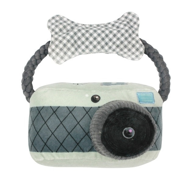 Dog Chew Toy Interactive Squeaky Camera Shape Teeth Cleaning Molar Toys for Puppy Aggressive Bite Resistant Plush Cotton